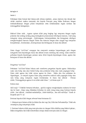 Set 3 Nota Bahagian A Soalan 1 Perkataan Islam Berasal Dari Bahasa Arab Ertinya Sejahtera Studocu