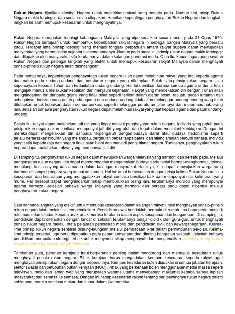 Rukun Negara Dijadikan Ideologi Negara Untuk Melahirkan Rakyat Yang Bersatu Padu Pdf
